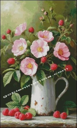 НАТЮРМОРТ С МАЛИНИ И ШИПКОВ ЦВЯТ